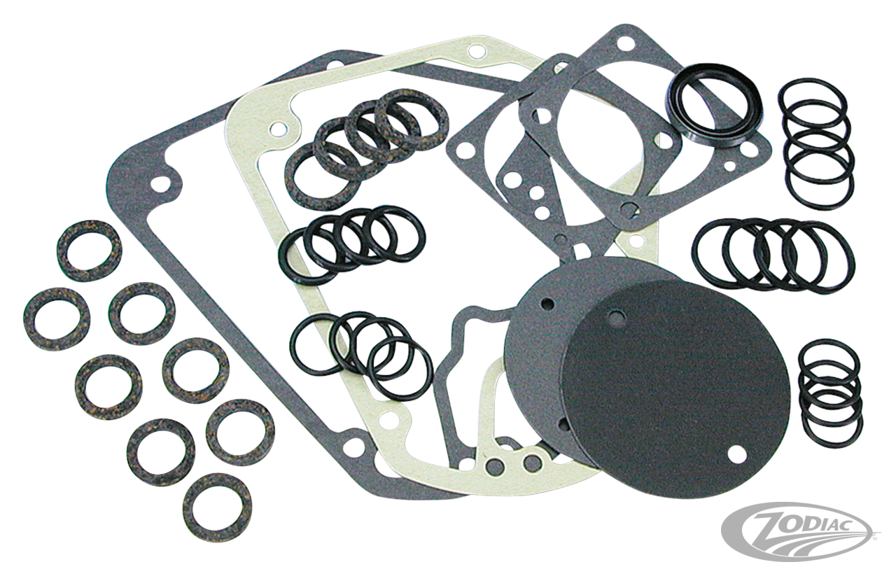 Spitzenqualitäts-Dichtungssätze von drei Herstellern. Von dem Amerikanischen Herstellern James und Cometic sowie vom europäischen Dichtungshersteller Athena. Alle verwenden Spitzenmaterial zur Herstellung ihrer Produkte, jeder einzelne fügt jedoch noch die eine oder andere Spezialität in der Fertigung seinem Produkt hinzu. Jeder dieser Sätze entspricht und übertrifft sogar den Herstellervorgaben. Zur Verfügung stehen: Komplettsätze, Motordichtring-Sätze und Stösselstangenrohr-Sätze für die meisten Modelle ab 1937. Alle Dichtungen, Dichtringe und O-Ringe werden auch einzeln an anderer Stelle in diesem Kapitel aufgeführt. Hinweis: Athena Dichtsätze beinhalten keine Ventilschaftdichtungen. Hinweis: Diese Dichtungen sind nicht für komplette S&S Motoren zu verwenden. Diese sind separat aufgelistet.