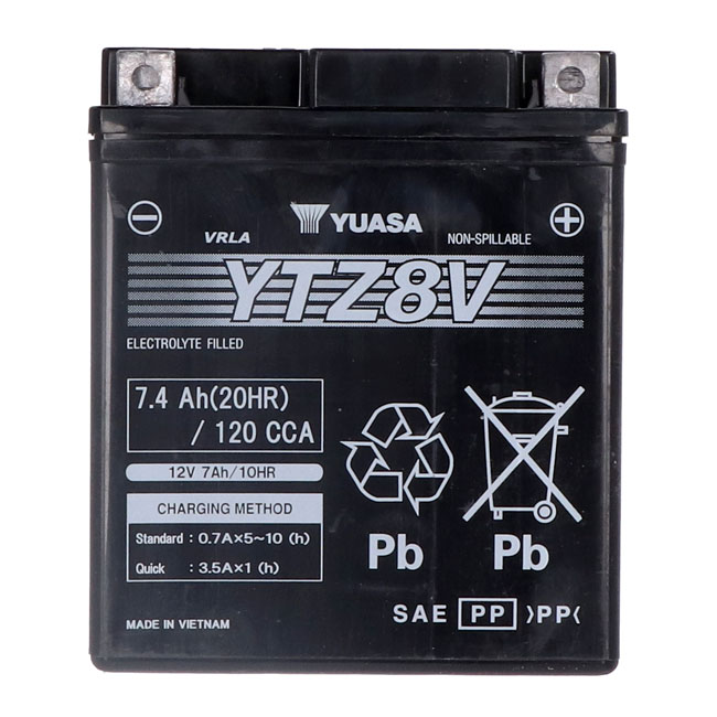 Yuasa, High performance AGM battery, YTZ8VYuasa’s elite performer; the AGM (Absorbent Glass Mat) series; has more cranking amps and higher amp hour capacity for years of trustworthy service.