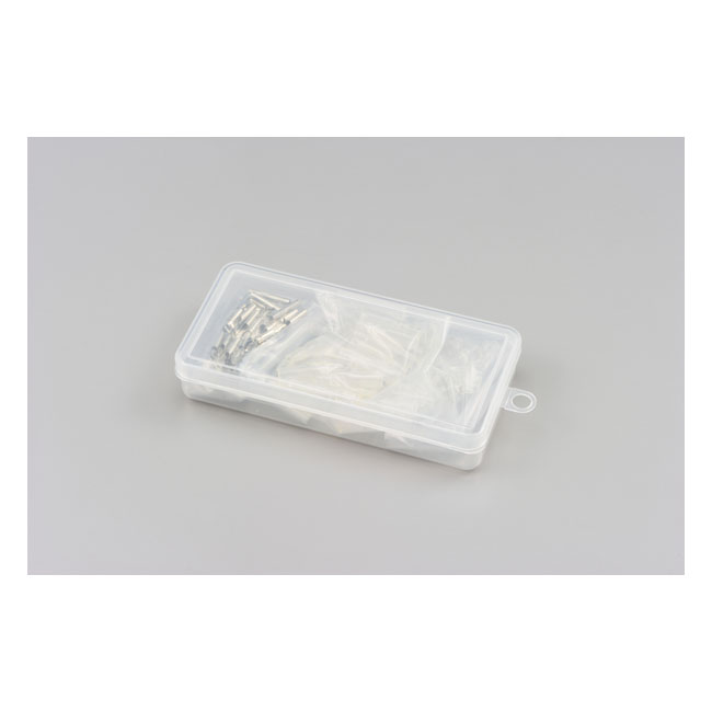 Kawasaki type terminal set for bullet type connector. Including 30 connections. Fits for 0.5 to 2.00 sq cable (AWG20-14). Set contents: - 30pcs terminal sleeve male - 30pcs terminal sleeve female - 30pcs male terminal - 30pcs female terminal