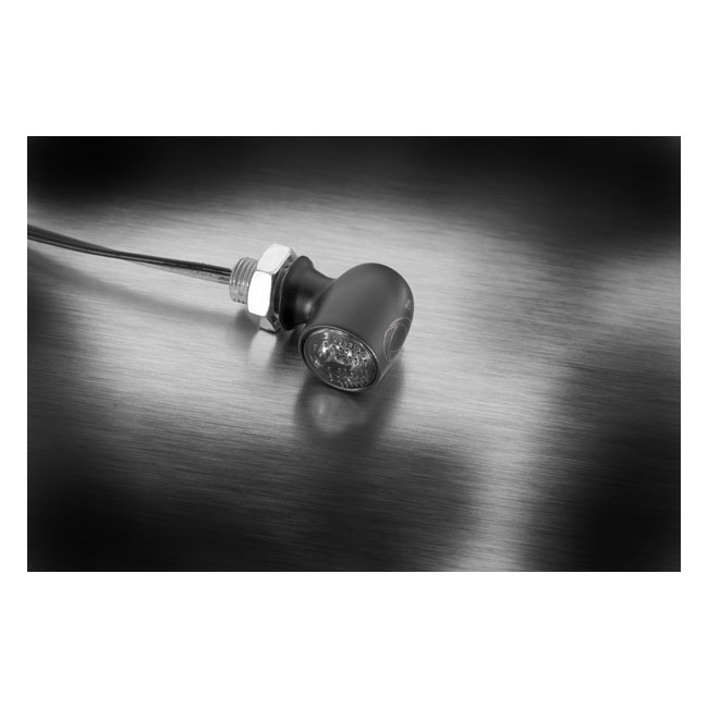 Black. Dark lens. With an overall length of 14mm; a metal housing diameter of 10mm (1cm) and lens diameter of just 7.8mm the Spot RB is an ultra small taillight that re-defines miniature. Easy to overlook in traffic; you'd say; but the High Output power LED in combination with the special Extranz Extreme Optical Transparency technology actually gives it a colossal light output; when taking in account its tiny dimensions. High quality and ECE compliant so fully street legal. This is The One for those that like a taillight not just small but virtually invisible on a bike; until activated. With M5 x 6.5mm threads.- ECE-approved for rear use - EXtranz® - Extreme Optical Transparency Technology - Kellermann HighPower LED Technology - Longlife Protection Guard®; IC operated; 330 kHz- High quality metal housing - Suitable for 12 volt DC applications - M5x0.5x6.5 threaded - Dimensions: Length 14mm; max. diameter 10mm; lens diameter 7;8mm - European design protection Note: See turn signal section for style & size matching Spot turn signals and position lights.