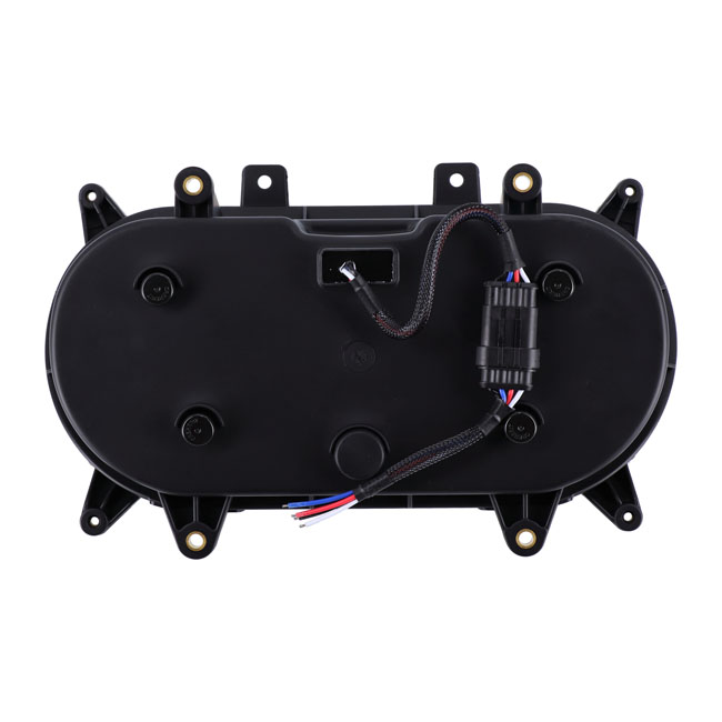 ECE & DOT approved. Black reflector. With white LED halo-ring/position light/DRL. Economical high/low beam LED conversion dual head lamp unit to replace the stock Road Glide's dual H4 lamp unit. LEDs are an improvement at all levels when compared to H4 lighting and offer more effective and whiter light at 6500K; much better reliability and less amperage draw. - With white halo-position light - Unit comes complete with wiring with a 3-prong plug that is identical to a standard H4 light bulb; allowing a plug & play conversion- Compatible with left side (UK) & right side (EU) riding - 205.4mm (8.08") high - 333.4mm (13.12" wide - 168.4mm (6.63") deep - 6500K color temperature - 12-Volt DC - High beam 38W - Low beam 24WNOTE: Not available for sale in Germany