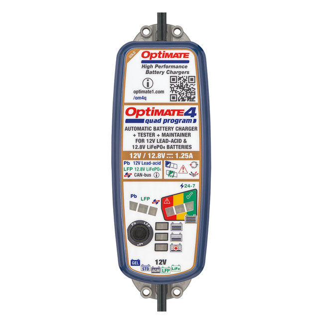 9-step 12V / 12.8V 1.25A sealed battery saving charger & maintainer for AGM; GEL & STD 12V and works with 12.8V Li-Ion made batteries with LiFe & LFP technology. Note: Quad program – select program 1 or 3 to charge battery direct or through a live (hot) 12V socket; or program 2 or 4 to charge through BMW CAN-bus controlled 12V socket. Will require optional cable accessory to connect to socket. - Fully automatic and safe charger / trickle charger for 24-7 use - BMW CAN-bus compatible; automatic activation - Smart desulphation from 0.5V; for Pb (conventional lead acid) batteries - Low voltage recovery & BMS reset; for LFP battery - Tests battery state of health - Energy saving technology - Stand-by power less than 0.5W - Efficient 24-7 battery maintenance - Weatherproof - Rated for use down to -40°C / -40°F - No risk of overcharging - Sparks suppressed - Safe for vehicle electronics - Safe for long-term battery maintenance - Automatic shut-down if short-circuited or battery disconnected - Includes weatherproof battery lead; battery clip set & hanging hook.