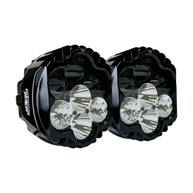 ECE; DOT & SAE approved. Shark Demon LED headlamps offer high-performance illumination; specialized for motorcycle on road use with unmatched beam pattern and durability. Low beam projects 11;314 raw/5554 effective lumens from six projection-style LEDs. High beam adds eight additional direct-reflective LEDs boasting an impressive 22;274 raw/8634 effective lumens total. Side facing position lights further increase viewing angle and width of beam pattern for ditch-to-ditch illumination. Lamp assemblies are completely sealed IP67; waterproof with clear polycarbonate lens and gloss black aluminum housing. Includes 3mm thick 304 gloss black stainless steel mounting brackets; plug and play wire harness; and mounting hardware. - Plug & Play - ECE approved - Unmatched beam pattern - Side facing position lights - Includes wiring harness; mounting brackets & hardware. Note: Larger aftermarket amplifiers require 998682 Fairing Spacer Kit; which must be purchased separately. Note: When installing with fairing vent lights; modification is required.