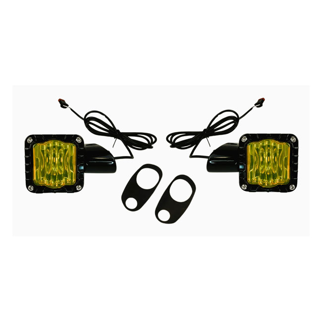 High performance LED front turn signal assembly to replace the OEM turn signal with an aggressive styled housing in a gloss black finish. SAE Selective Yellow faceted lens offers dual intensity yellow running light and full contrast DOT compliant yellow/amber turn signal flash. Units are equipped with plug and play JAE connector for quick and simple 100% plug and play installation. - Yellow turn signals - Yellow running lights - Yellow faceted lens - Front facing turn signal assembly to replace the OEM turn signals - High performance LED - Aggressive fin-styled housing - Decorative metal rivets complete the look with a rugged; industrial appeal - Gloss black finish - Amber Run; Amber Turn signal faceted lens offers dual intensity running light - Full contrast DOT compliant turn signal flasher - Plug and play JAE connector for quick and simple 100% plug and play installation - Housing dimensions: 2.08" (50mm) long x 2.08" (50mm) high x 1.78" (45mm) deep. Note: No ECE approval