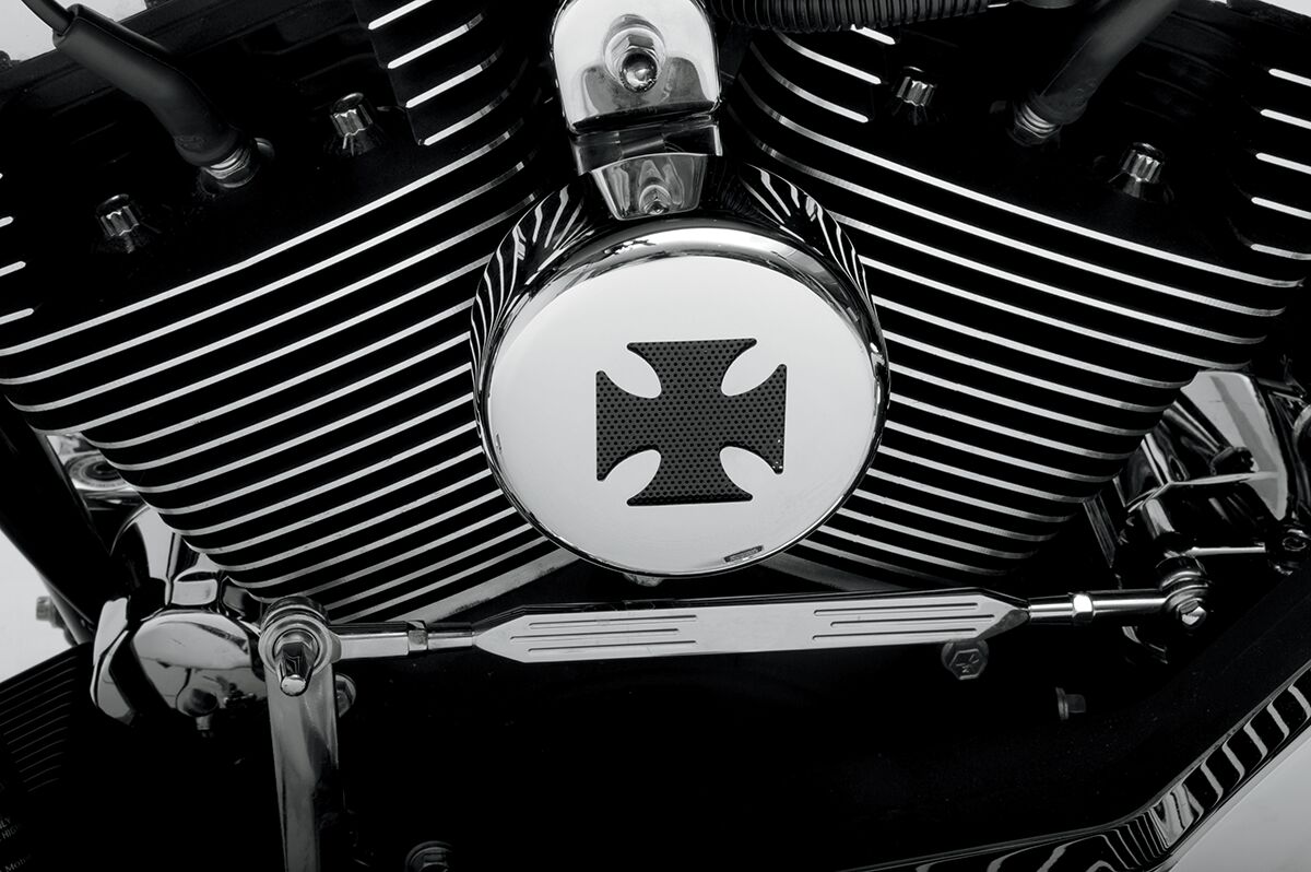 Hupenabdeckung- Runde Hupenabdeckungen ersetzen die standardmäßigen Cowbell"-Abdeckungen.- Ungefähr 11,7 cm (4-5/8") Durchmesser.- Aus Stahl gefertigt"
