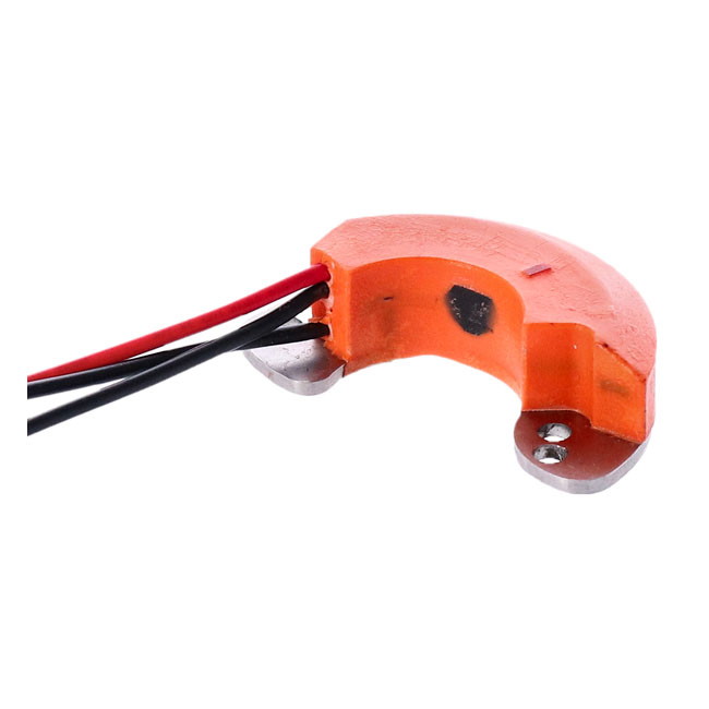 With hand controlled advance; like OEM. This is a proven; tried and tested ignition module. Hall sensor type. Works with 6 and 12 Volt system and will never need re-adjustment or other maintenance. Shorter opening duration increases spark intensity by 60%. Fits to stock base plate. Note: Will not work on 1964 Panhead models equipped with the stock dual points single fire system. Note: See 519444 for the same module with electronic automatic advance.