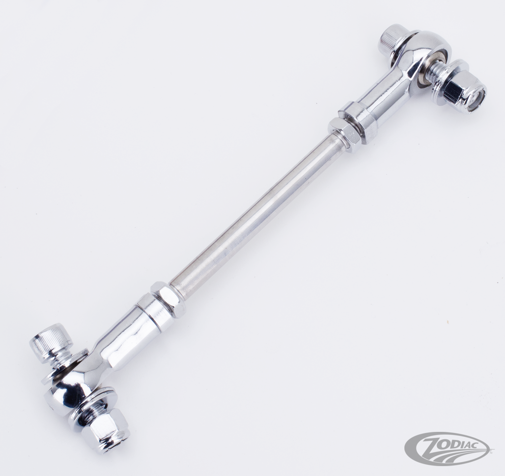 Chrome plated shifter rods for most custom applications. These rods are the perfect solution for custom bike builders. The heavy duty ball rod end prevents misalignment of the foot shifter or foot brake gear as it will align itself, even when the mounting points are not in line. Ball rod ends are also available separately.