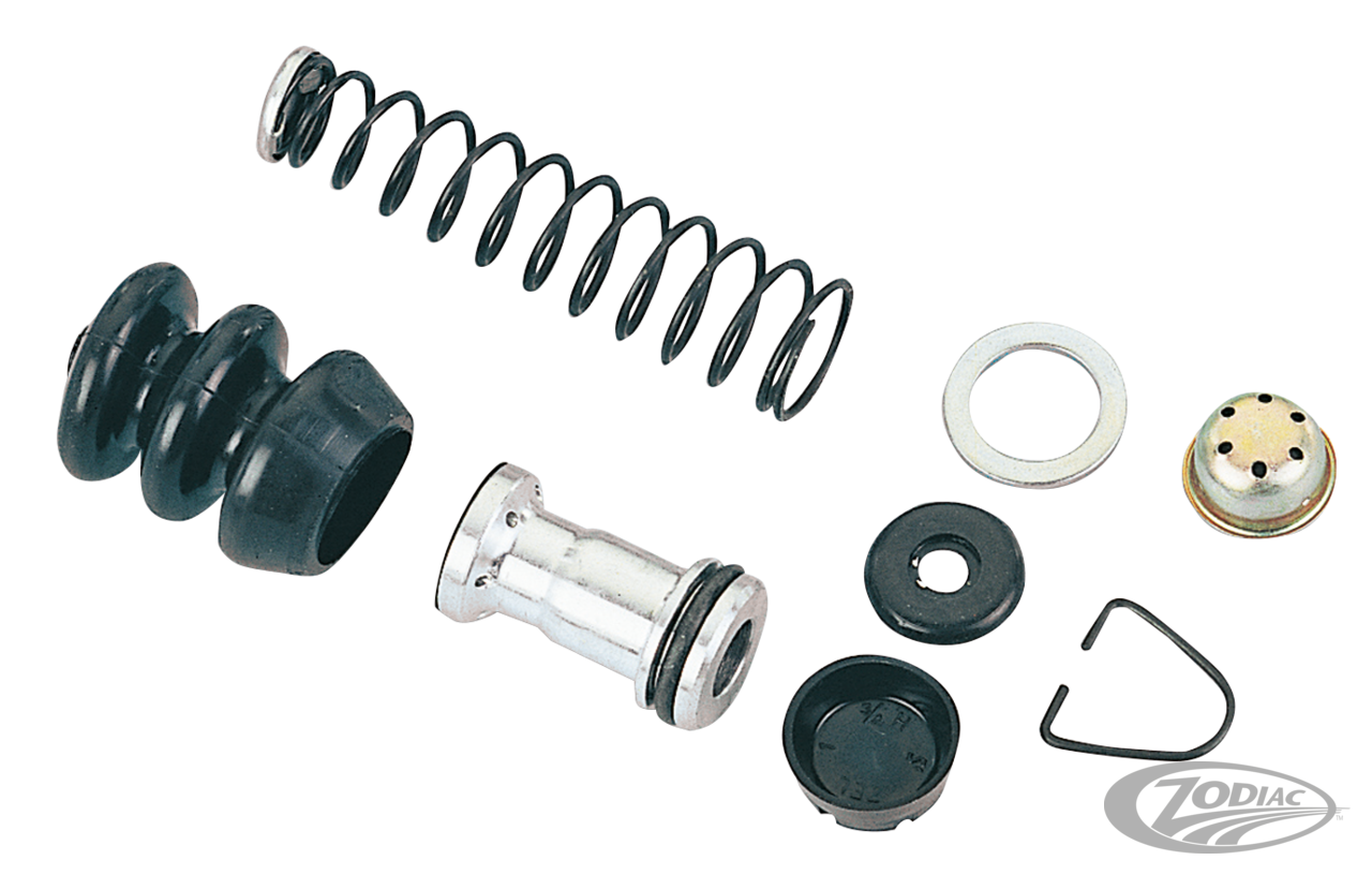 Complete repair kits for OEM and stock replacement brake master cylinders include all internal parts needed for a complete rebuild. Can be used with DOT 3, DOT 4 or DOT 5 brake fluid but you should always stay with the same brake fluid type as the three types are chemically incompatible. Bore size is usually indicated a bit out of sight on the master cylinder. When not specified for ABS or non-ABS rebuild kits fits both. Please note that kits for models with master cylinders with a remote fluid reservoir can not be used for master cylinders with an integrated reservoir and vice versa.