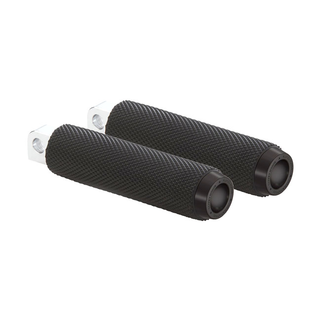 Rubber design features clean style with high traction rubber for excellent foot grip in all riding scenarios. CNC machined billet end cap with laser engraved logo. Note: See 599466 for matching shift/brake peg
