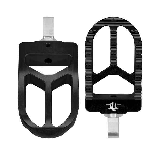 Durable anodized finish. Aggressive looking and among the strongest on the market. The unique motocross based design; combined with high quality CNC machined billet aluminum makes these pegs very robust; light and safe. The GRIP surface; with the extra-wide footplate; guarantees maximum grip. The smooth underside is angled to improve cornering angles. Rotates 360°; locks in any angle and the tilt adjustment screw is used to dial into the perfect foot position. Note: Use a high strength thread locker; correct torque specifications; and correct hardware. -- Strong but lightweight billet aluminum - Beveled underside for greater cornering clearance - Rotates 360° to any angle - With tilt adjustment screw.