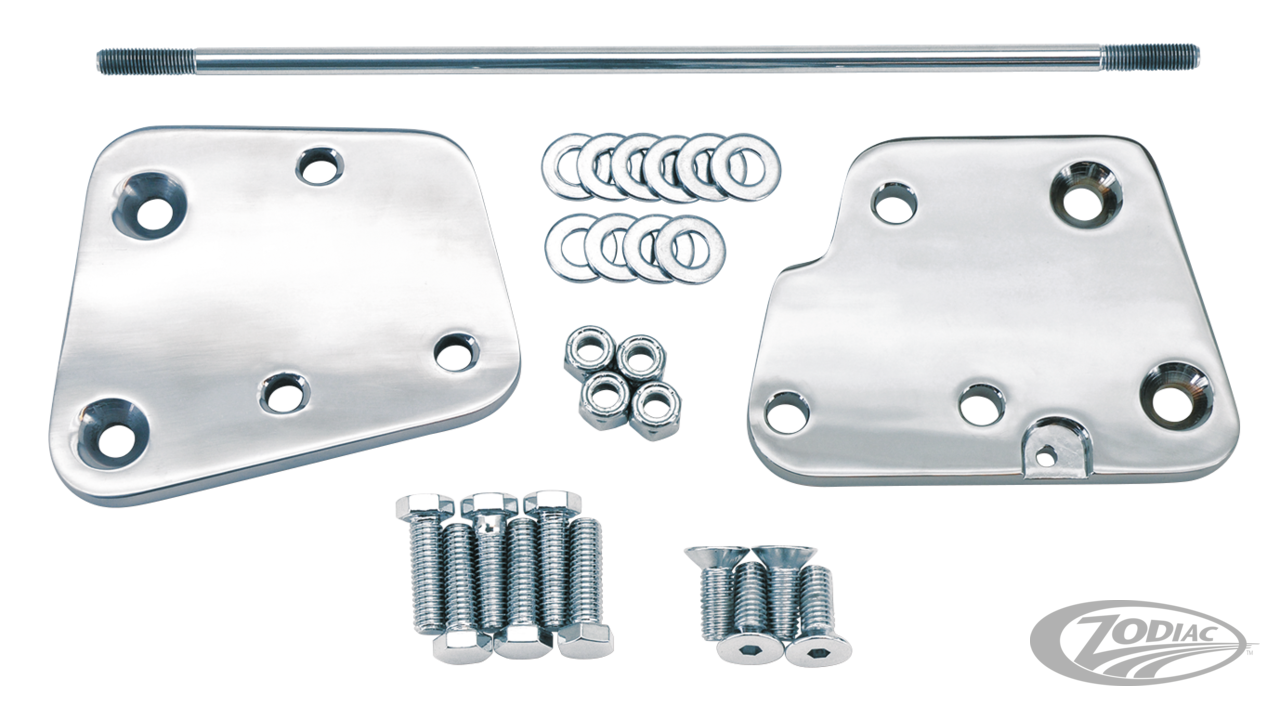 Verlagern sie die OEM Trittbretter um 2" weiter nach vorne für zusätzlichen Bein-Freiraum. Bei diesen Kits werden die serienmässigen Trittbretter, Bremshebel, Schalthebel und Schaltarm weiterverwendet. Kits beinhalten Aluminium-Adapterplatten in wahlweise verchromter, polierter oder schwarzer Ausführung sowie eine verlängerte Schaltstange aus Edelstahl und Befestigungsschrauben. Kits für 1986-1999 Softail beinhalten noch zusätzlich eine verchromte Bremszylinderabdeckung. Eine verlängerte Bremsleitung für die Hinterradbremse ist nicht im Lieferumfang enthalten und muss separat auf Wunsch dazu bestellt werden. Erhältlich sind diese Kits für Softail 1986-1999 sowie Softail 2000-2017 die mit Trittbrettern ausgestattet sind.