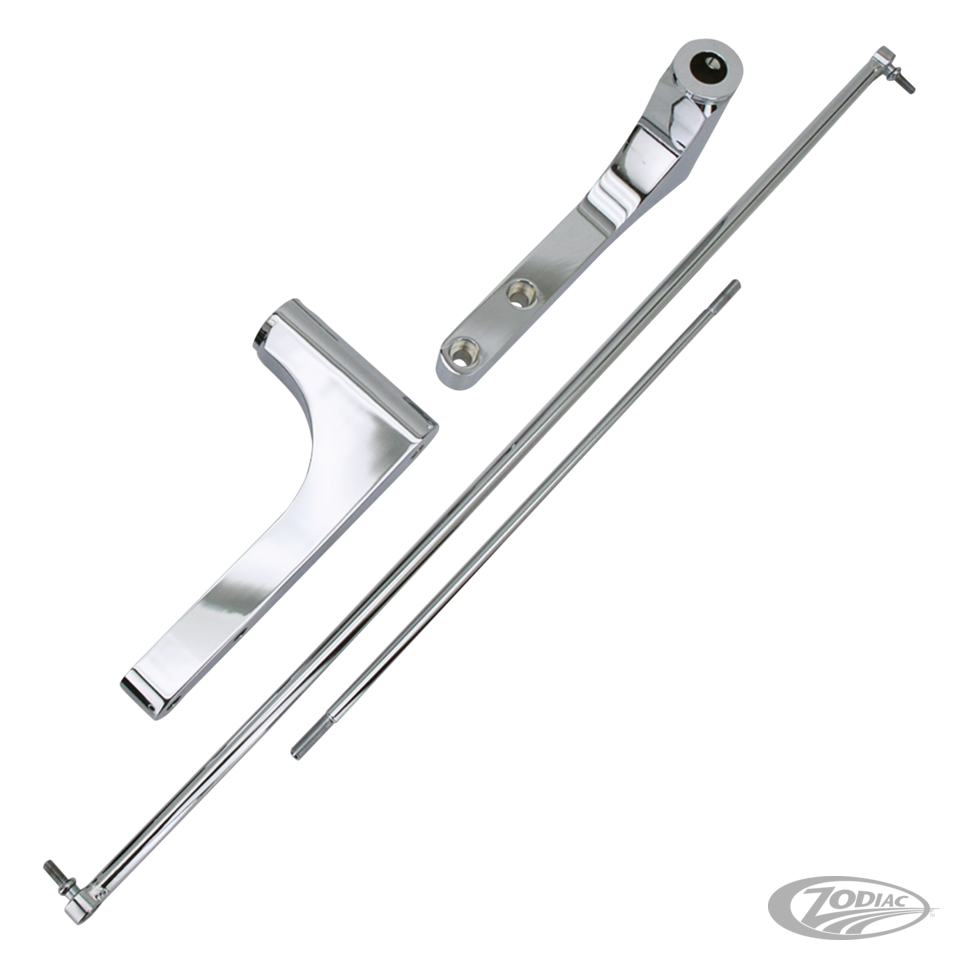 Für alle besonders langbeinigen Fahrer von Sportster 2004-2013 bieten wir dieses Versatzkit für die vorverlegte Rastenanlage an. Unter Beibehaltung der serienmässigen Schalt- & Fussrasten verlagert es die Rasten ganze 6" (15cm) weiter nach vorne. Der Satz beinhaltet verlängerte Schalt-& Bremsstangen und versetzte Aufnahmen für Brems- & Schalthebel.