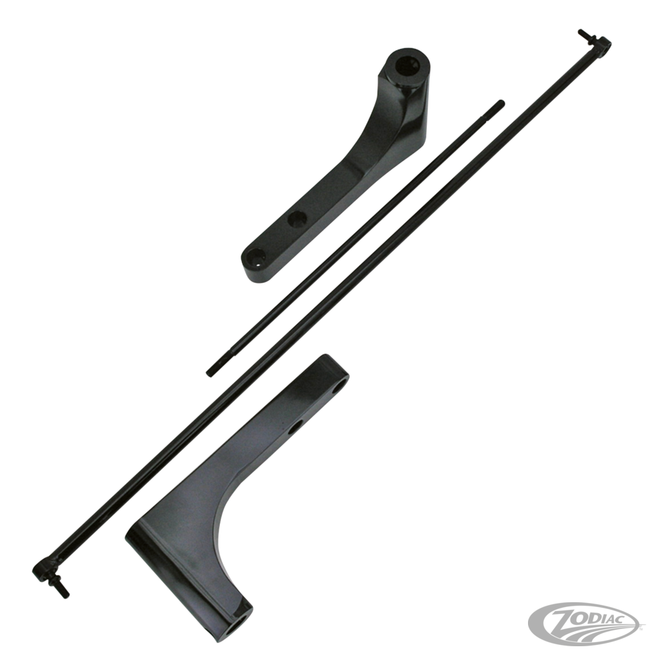 Für alle besonders langbeinigen Fahrer von Sportster 2004-2013 bieten wir dieses Versatzkit für die vorverlegte Rastenanlage an. Unter Beibehaltung der serienmässigen Schalt- & Fussrasten verlagert es die Rasten ganze 6" (15cm) weiter nach vorne. Der Satz beinhaltet verlängerte Schalt-& Bremsstangen und versetzte Aufnahmen für Brems- & Schalthebel.