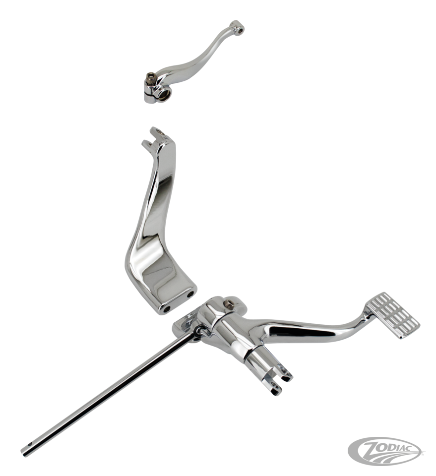 Eine tolle Alternative wenn sie keine komplett neue, vorverlegte Rastenanlage möchten. Diese Kits verlagern die originalen Mid-Mount Rasten 2" (5cm) weiter nach vorne unter Beibehaltung der vorhandenen Fussrasten, des Bremspedals und Schaltgestänges. Kit beinhaltet linke & rechte Rastenaufnahme, Brems & Schalthebel sowie Montagematerial.