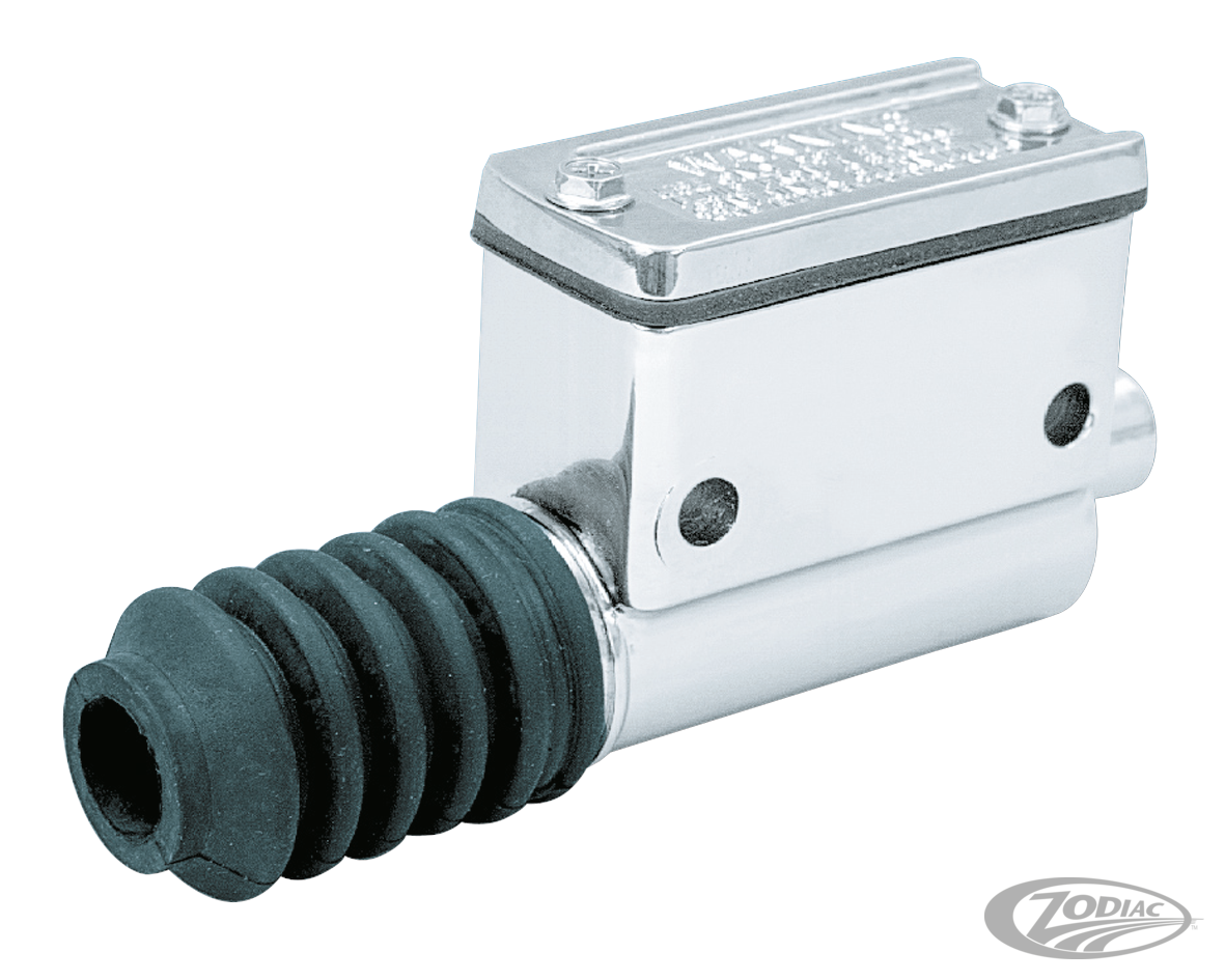 Dieser Genuine Zodiac Fussbremszylinder mit 5/8" Bohrung ist eine genaue Reproduktion des OEM Teils, welches an Sportsters 1982 bis Anfang 1987 und Heritage Mitte 1986 bis Anfang 1987 verbaut wurde. Bei diesem hochglanzverchromten Behälter wurden die Rippen weggelassen. Entspricht (OEM 42453-82A & 4245482).