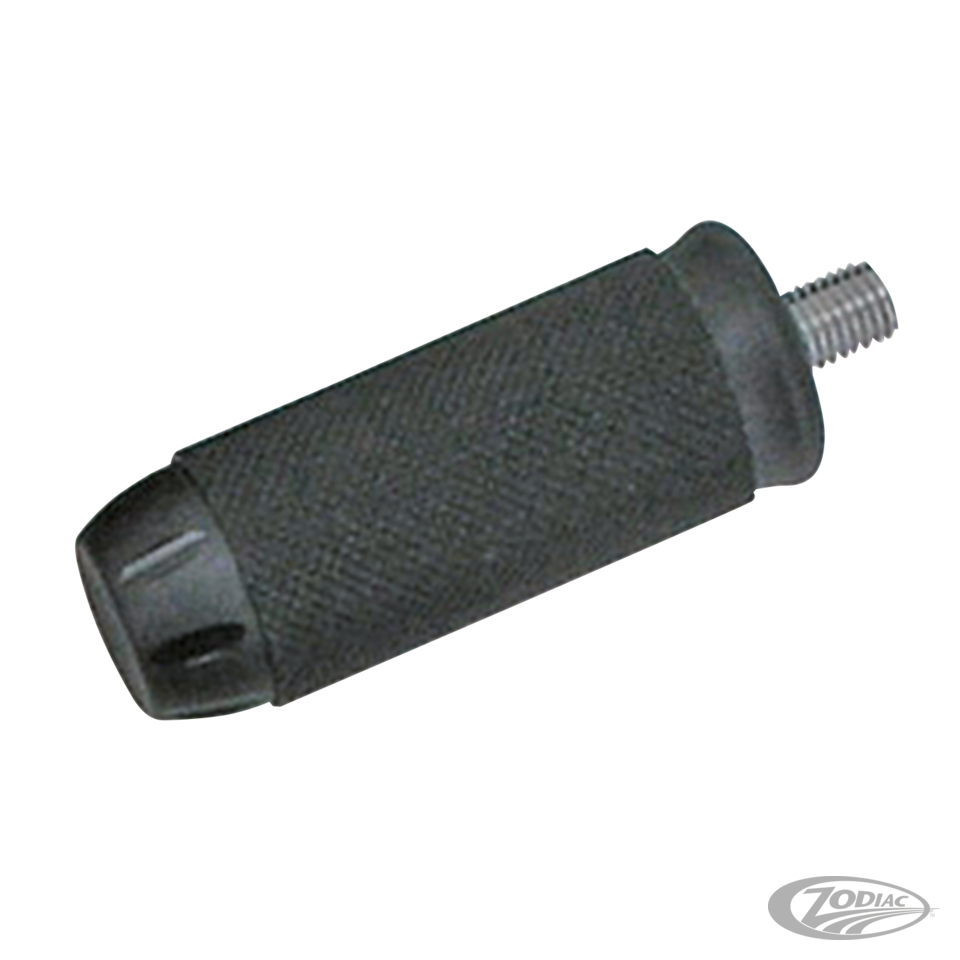 Billet-Alu Fuss-, Brems- & Schaltrasten mit Antirutsch-Gummis. Fussrasten besitzen männliche Aufnahmen und werden paarweise angeboten. Brems- & Schaltrasten werden einzeln angeboten und sind in Chrom, Bronce, "Contrast Machine-Cut" mit Einfräsungen, Stealth-Schwarz oder Stealth-Bronce erhältlich. Stealth ist eine eine 2-Ton Kombination aus mattem und glattem Finish das nicht nur auf den Abbildungen toll aussieht, sondern besser noch am Bike.