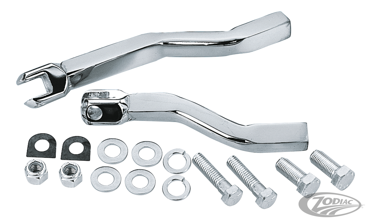 Verchromte Hi-Way Halter mit soliden Aufnahmen aus massivem 5/8" (16mm) 4-Kant Stahl. Geeignet für alle unsere Rasten mit Male-Mount Aufnahme. Inklusive komplettem Befestigungsmaterial. Passend für 1977-1984 FX und 1983-1984 Sportster.