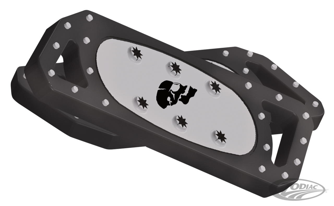 Billet-Aluminium mit einer Edelstahl-Deckplatte. Mit aggressiven Perforationen und Einsätzen für maximale Traktion. Die Bretter passen in die Standardhalterungen, sind12" (30,5 cm) lang und 4" (10,2 cm) breit, paarweise angeboten.