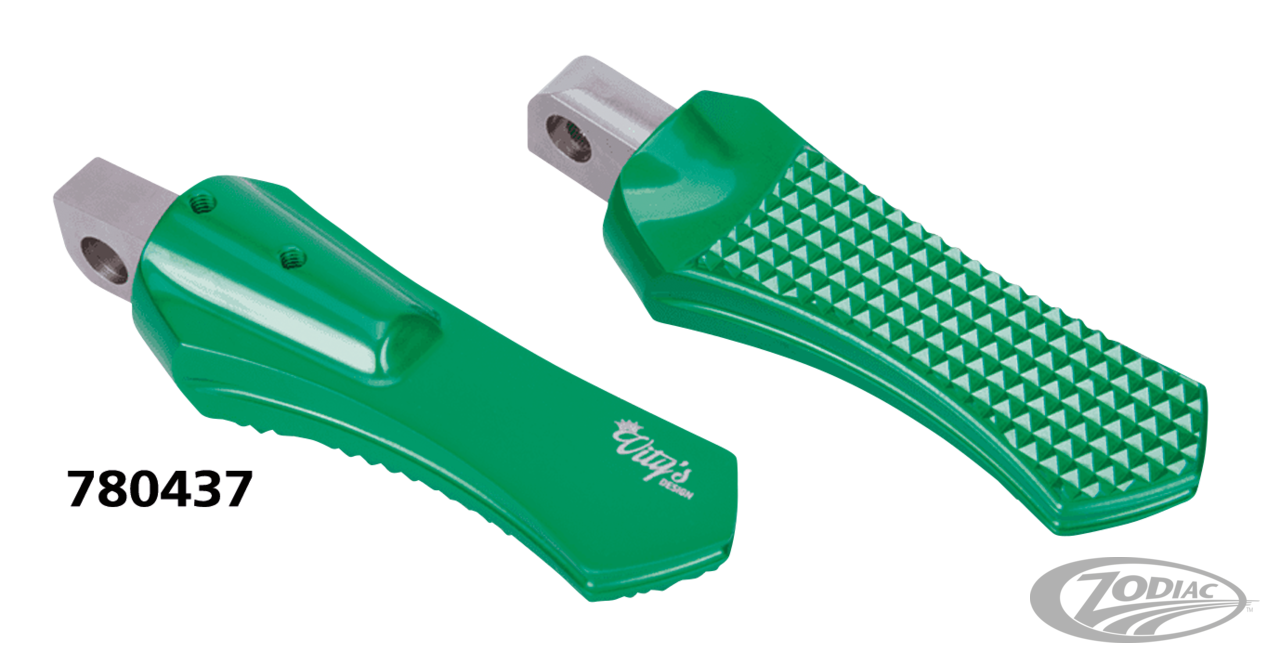 Fußrasten passen bei den meisten Harley-Anwendungen für männliche Halterungen zur Fahrer- und Beifahrerposition., Grün
