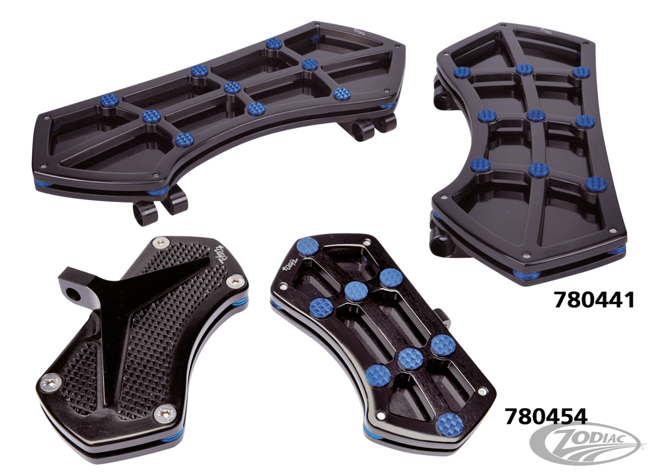 Fahrer-Trittbretter eignen sich für 2012-2016 FLD Switchback, 1986-2017 FL Softail, Tourer ab 1980 (außer FLHTCUL & FLHTKL) und Trikes ab 2009, Schwarz/blau