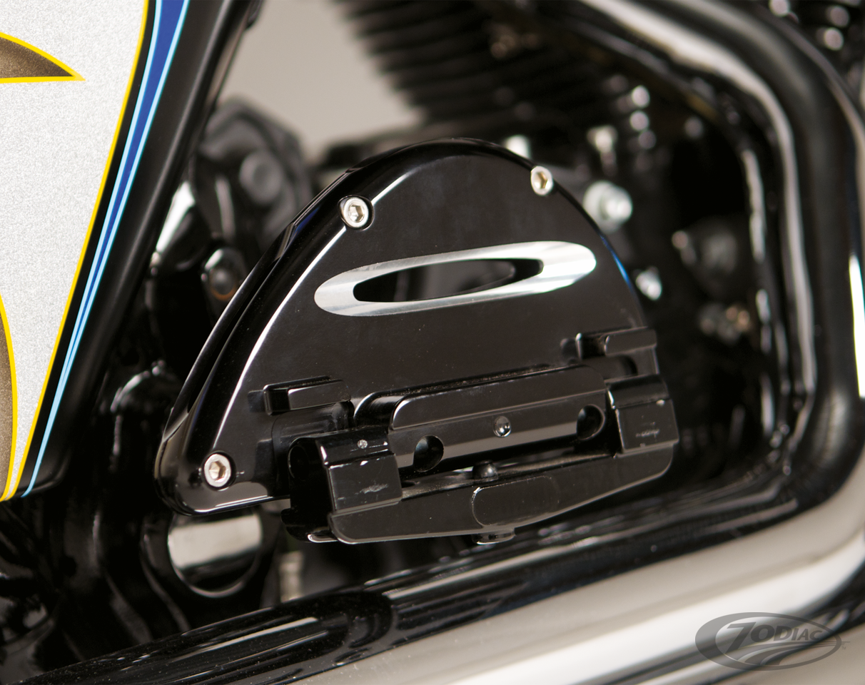 Aus zwei Teilen Billet-Aluminium gefertigt, um ein völlig neues durchsichtiges Design zu schaffen. Eine großartige Möglichkeit, Ihrem Bike außergewöhnlichen Stil und Komfort zu verleihen. Die Trittbretter für den Fahrer sind 18" (46cm) lang & 3/4" (15cm) breit sowie 1" (2,5cm) dick und werden mit den serienmäßigen Montageteilen an Ihr Bike geschraubt. Die Trittbretter für den Beifahrer sind 7" (18cm) lang, 4 10cm breit und 2,5cm dick.