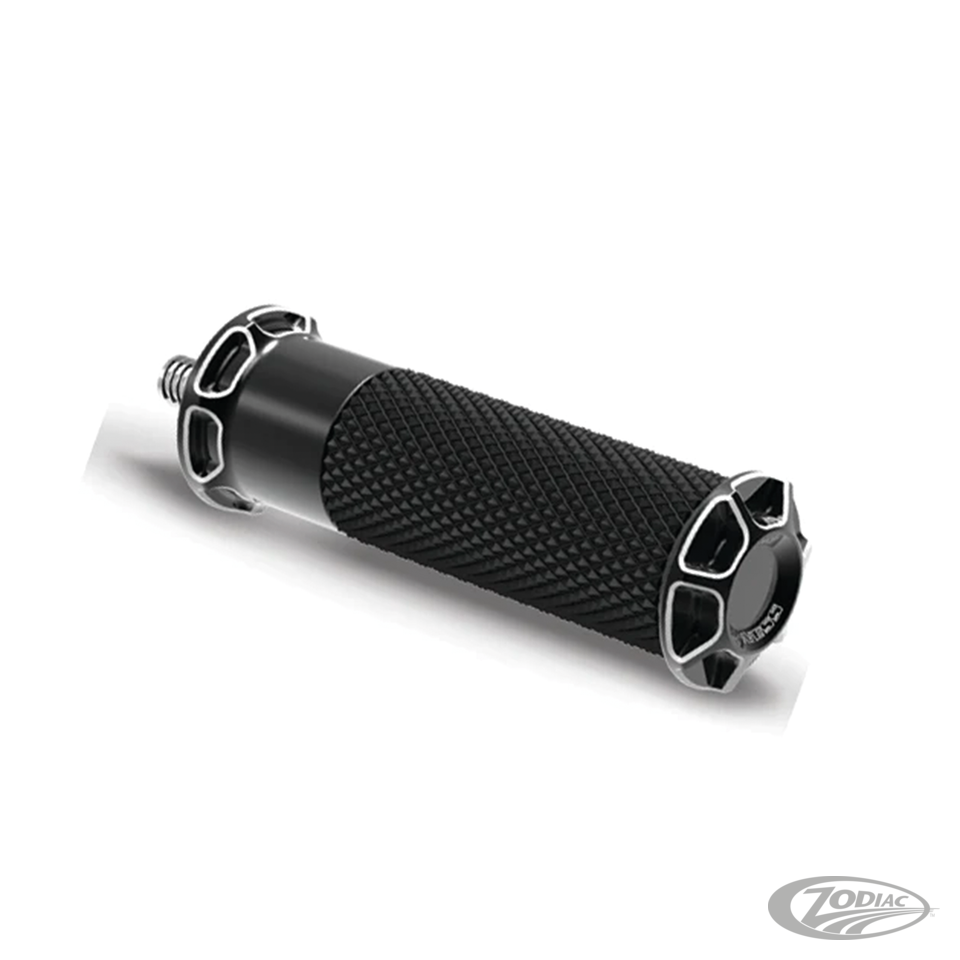 Die perfekte Mischung aus Traktion, Stil und Komfort. Fusion Standard-Fußrasten für die männliche Montage werden paarweise angeboten und bestehen aus geschmiedetem Stahl für extreme Haltbarkeit, gerändelten Gummieinlagen für hervorragende Traktion und Billet-Aluminium-Akzenten für einen großartigen Look. Fusion-Schalpins sind gegossene Gummistifte, die über einen integrierten Befestigungsbolzen mit Billet-Aluminium-Akzenten verfügen und jeweils einzeln angeboten werden.