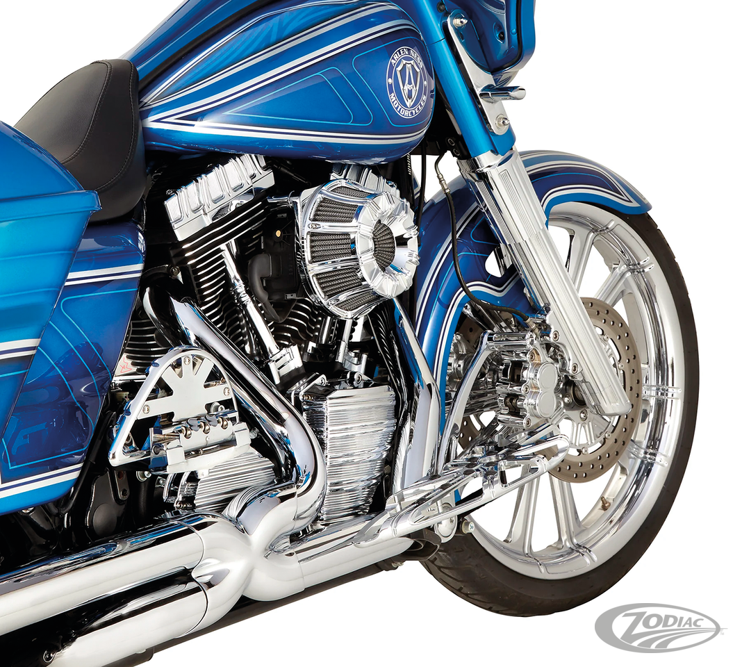 Die ultimativen Bremspedale von Arlen Ness. Passen natürlich perfekt zu Ness Schalthebeln oder Fersen-/Zehenschaltsätzen, können aber auch einzeln verwendet werden. Diese aus Billet-Alu gefertigten Brempedale sind 1" (2,5cm) länger als das Original, um die Bremskontrolle für Personen mit normalen oder großen Schuhgrößen zu verbessern.