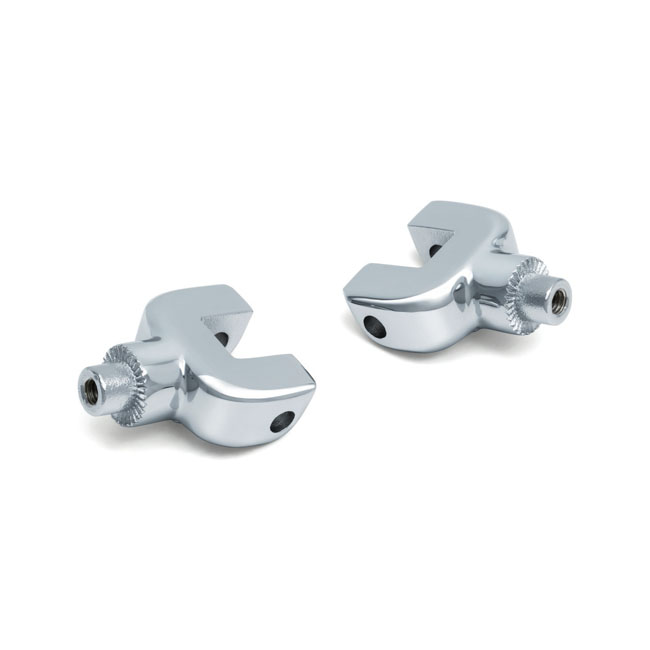 Splined adapter that allows installation of any Kuryakyn passenger floorboards; mini-boards or footpegs that use splined adapters. The splines allows the passenger footrest to rotate and then fasten to the preferred foot angle for best passenger comfort
