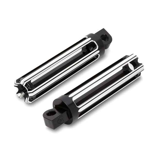 With traditional H-D male mount. CNC machined from 6061-T6 aluminum. Note: 10-22 XL1200X/XS; 11-20 XL1200C; 12-16 XL1200V models require 505501 (chrome) or 505502 (black) adapter for foot peg installation.