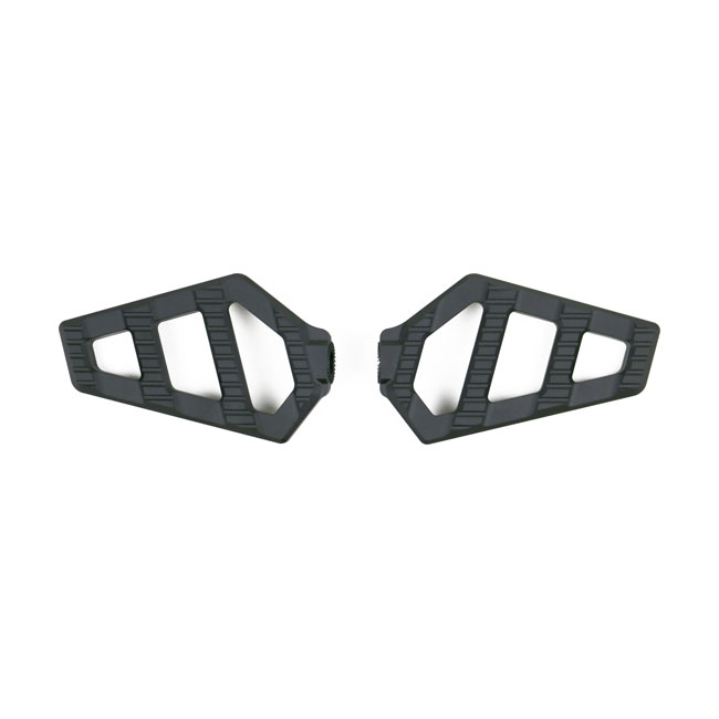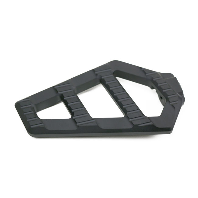 Black anodized finish. CNC machined billet aluminum mini rider/passenger floorboards. Lightweight open design. Perfect to replace standard foot pegs; floorboards or passenger pegs for a more performance orientated look & ride. Dimensions: 4" (102mm) long; 6.5" (165mm) wide; 0.75" (19mm) thick. Note: Requires the additional purchase of application-specific mount adapters 993868 (traditional H-D male mount); 993866 (splined rider peg) or 993867 (splined passenger peg) for the application it will be used in.