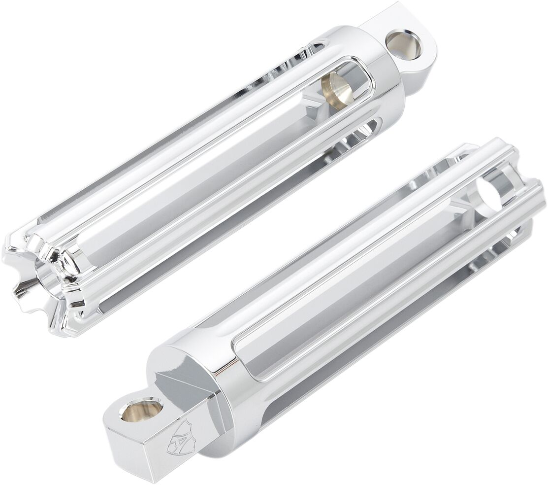 10-Gauge Fußrasten mit Male-Mount- Innovatives Cage-Design rundet das Erscheinungsbild Ihres Motorrads ab.- Aus 6061-T6 Billet-Aluminium gefertigt.- Passend zu den anderen Teilen der Arlen Ness 10-Gauge-Serie