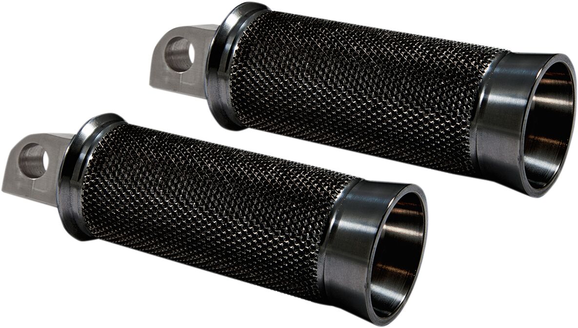 Cruiser Fußrasten- Gleiches Male-Mount-Design wie die Speed Pegs, jedoch ohne gefräste Schräglagenfreiheit für einen entspannteren Stil.- Edelstahl-Clevis, für jeden Winkel einstellbar.- Hergestellt in den USA