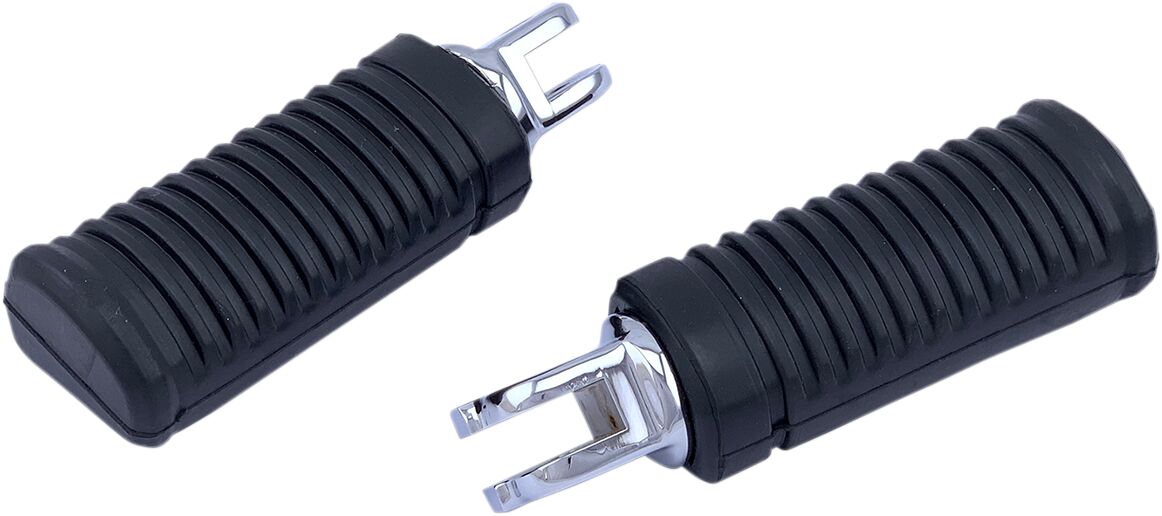FML Fußrasten- Fahrer-Fußrasten von Drag Specialties.- Verchromt mit GummihülsenMit geformten Gummihülsen und verchromten, geschmiedeten Halterungen, passend für vorhandene Originalteile.