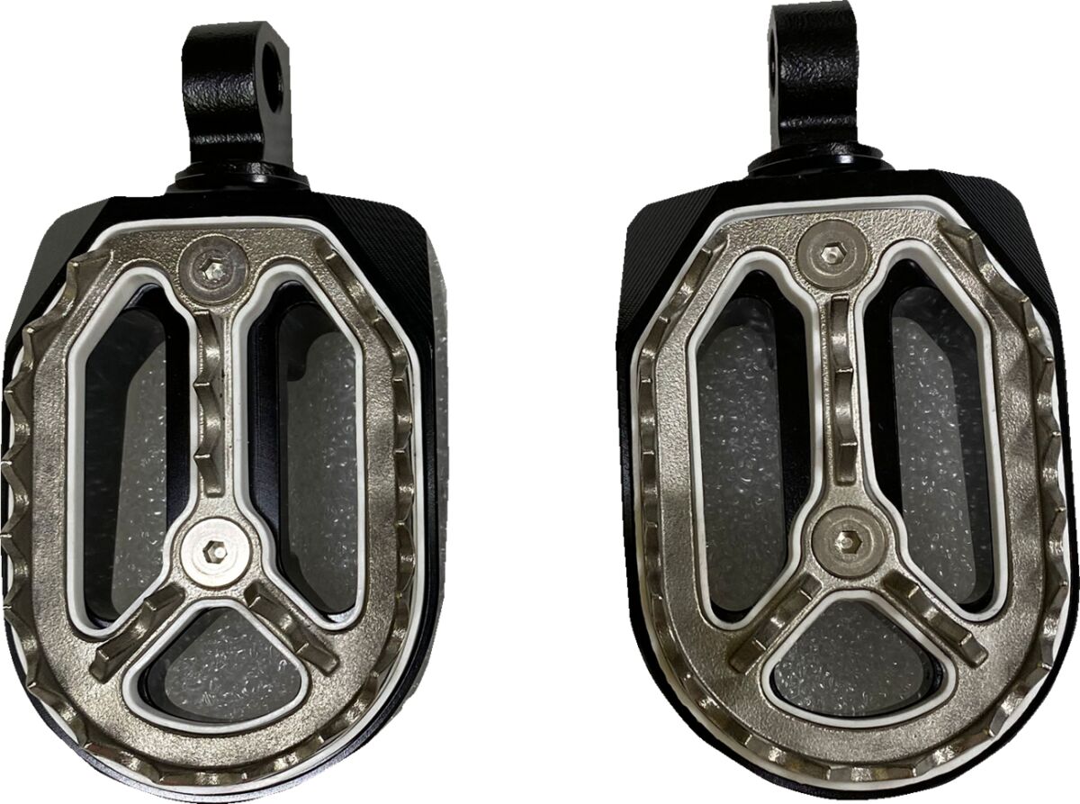Qualifier Fußrasten- Fußrasten mit weißem Gummieinsatz und verstellbarer Stahlaufnahme.- Paarweise erhältlichPassend für Harley-Davidson Modelle.