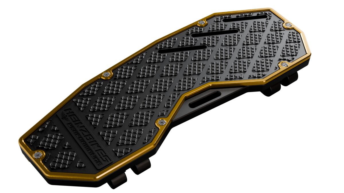 - Mit unserem einzigartigen Design und höchster Qualität aus hochwertigem Billet-Aluminium, CNC-gefräst, sind unsere neuen HeinzBikes® PERFORMANCE Floorboards robuster und leichter als andere Trittbretter am Markt..