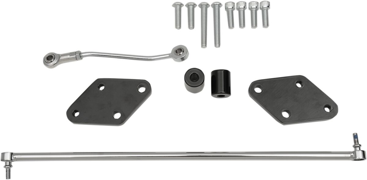 Versatzkit, vorverlegte Fußrastenanlage- Verlegt die Position von Standard-Forward-Control-Kits.- Verlegt die Rasten um etwa 51 mm (2) zurück und macht es kleineren Fahrern leichter, die Rasten zu erreichen"