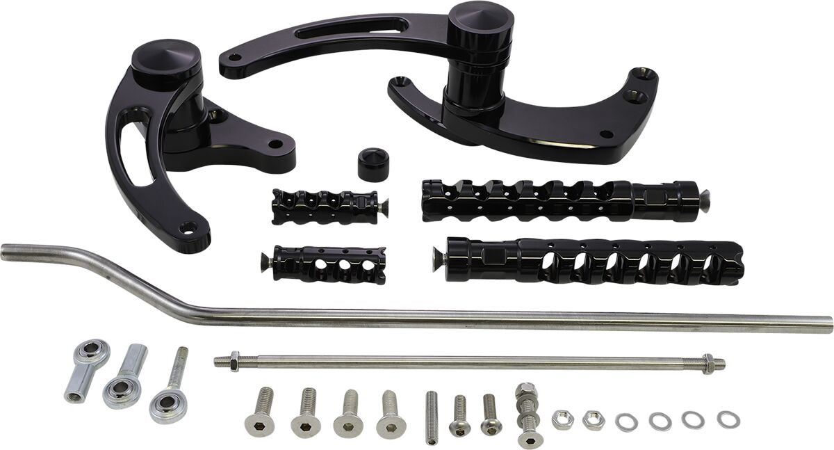 - Enthält verchromten Billet-Hauptbremszylinder (sofern nicht anders angegeben), geschlitzten Schalthebel und Bremsarme mit Muzzle brake Fuß- und Zehenrasten sowie Schaltgestänge und Montagematerial.