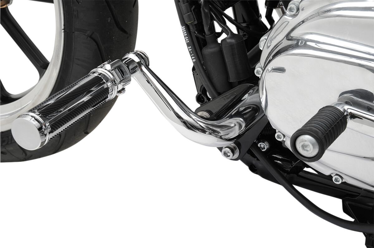 Einstellbarer Highway-Rastenhalter- Mit schwarzen Halterungen und verchromten Fußrastenarmen und Gabelköpfe.