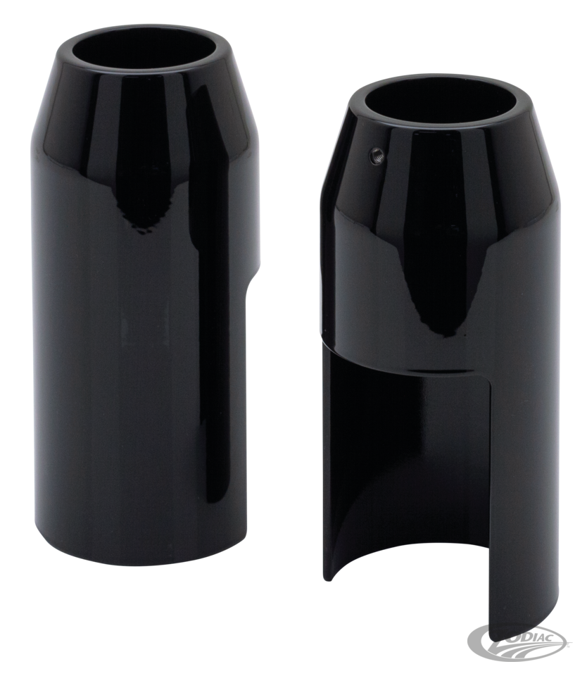 Billet-Aluminium mit einer glänzenden schwarzen Pulverbeschichtung, abgerundet mit einem Klarlack. Diese Gabelabdeckungen bieten das sauberste und glatteste Design, um Ihrer Originalgabel einen echten Custom-Look zu verleihen! Alle Abdeckungen werden paarweise für links und rechts verkauft und im Lieferumfang ist die erforderliche Hardware enthalten.