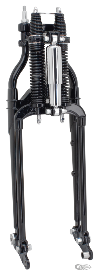 Dies sind perfekte Replikas der originalen Springergabel wie sie bei den FLSTS, FLSTSC & FLSTSB Softail mit 16" Rad und Bremse links 1997-2004 verbaut wurden bzw. FXSTSS, FXSTSB 1988-2006 mit 21" Vorderrad und Bremse rechts. Wie auch bei den Originalgabeln besitzen die FL Softail Gabeln eine 8° Reckung und die FX Softail Gabeln eine Reckung von 3°. Beide Versionen werden einbaufertig, ohne Bremszangenhalter und ohne Radachse geliefert.