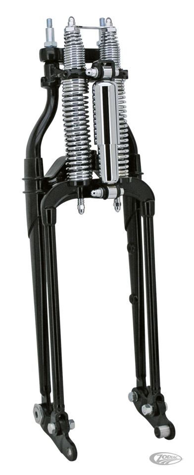 Dies sind perfekte Replikas der originalen Springergabel wie sie bei den FLSTS, FLSTSC & FLSTSB Softail mit 16" Rad und Bremse links 1997-2004 verbaut wurden bzw. FXSTSS, FXSTSB 1988-2006 mit 21" Vorderrad und Bremse rechts. Wie auch bei den Originalgabeln besitzen die FL Softail Gabeln eine 8° Reckung und die FX Softail Gabeln eine Reckung von 3°. Beide Versionen werden einbaufertig, ohne Bremszangenhalter und ohne Radachse geliefert.