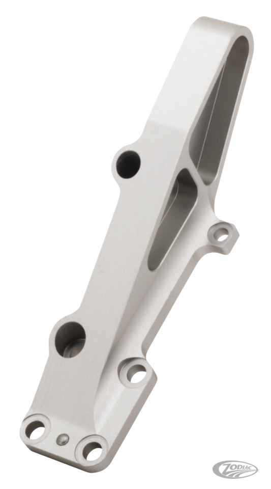 UPSD, (UP Side Down) Gabeln von Öhlins werden häufig von metrischen Superbikes auf Harley-Davidsons übertragen. Diese verfügen über äußere Gabelrohre, die von 54 mm auf 50 mm verjüngt sind und Innenrohre mit 43 mm Durchmesser. Um sie in eine Dyna oder Softail einzubauen, benötigen Sie Gabelbrücken, Radachsen, Bremssattelhalterungen und eventuell einen Satz Schutzblechhalterungen. Wir bieten Fat & Beefy Wide Glide (252mm Abstand) Gabelbrücken aus Billet-Aluminium mit einer 30mm dicken oberen, 35mm dicken unteren Gabelbrücke und einem 48mm langen Klemmabschnitt für die Gabelrohre. Die untere Gabelbrücke ist mit Gabelanschlägen ausgestattet, die leicht für die Verwendung an Custombikes angepasst werden können. Radachsen sind für die Verwendung mit den neueren Radlager für 25mm Achsen vorgesehen. Diese Lager können in alle Radnaben ab 2000 eingebaut werden, die ursprünglich für die Verwendung mit Achsen mit 3/4" oder 1" Durchmesser ausgelegt waren. Bremssattelhalterungen sind für die Verwendung mit 11 1/2" (292mm) großen Scheiben und Softail Dyna Bremssätteln 2000-2014 von 2000-2005 vorgesehen. Können bei Verwendung mit 11 1/2" (292mm) großen Scheiben auch mit Dyna Bremssätteln 2006-2017 verwendet werden.