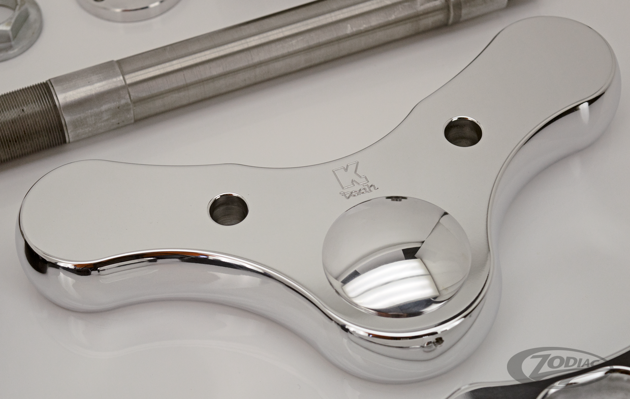 Diese CNC-gefertigten Billet-Alu Gabelbrücken besitzen versteckte Standrohrstopfen und Lenkanschläge für den besonders cleanen Custom Look und eignen sich für alle 39mm Standrohre der Sportster ab 1987, FXR 1987-1994 sowie Dyna 1991-2005. Die Montage erfolgt ohne jegliche Rahmenmodifikationen.