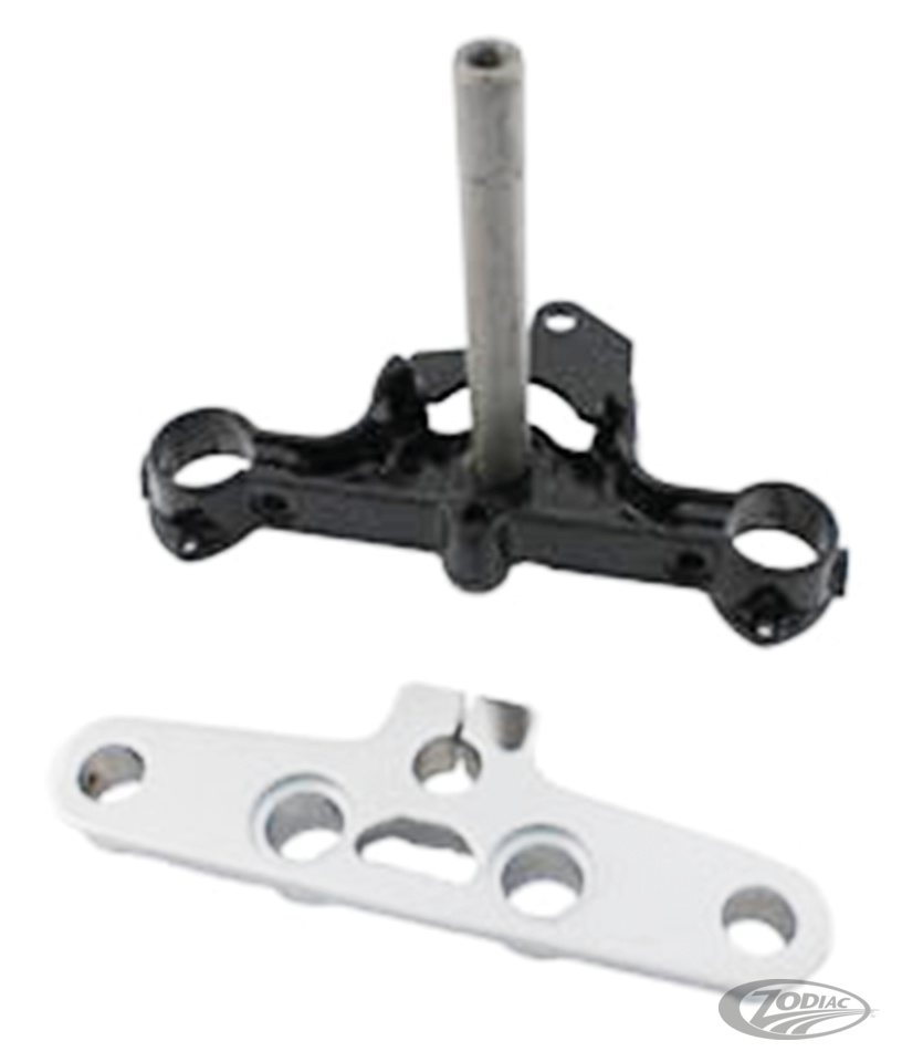 Die unteren Gabelbrücken dieser Kits werden als Originalersatz für Modelle hergestellt, die für den US amerikanischen Inlandsmarkt hergestellt wurden. Für die Verwendung an Modellen die für Europa hergestellt wurden kann es erforderlich sein, das Loch für das Neimann-Lenkschloss zu bohren und/oder das Ohr für das Vorhänge Lenkschloss des USA Modellen abzuschneiden. Bei den oberen Gabelbrücken gibt es keinen Unterschied zwischen den US- und Europamodellen. Alle Kits beinhalten eine obere und eine untere Gabelbrücke mit bereits installiertem Gabeljoch.