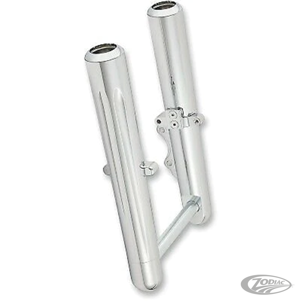 Definitiv die coolsten Tauchrohre für Bagger, Dyna oder Softail. Das konisch zulaufende Ness Billet Design mit verdeckter Achsaufnahme trägt drastisch zur Verschönerung ihrer Twin Cam bei. Hot Legs für Touring sind für die serienmässigen Doppelscheiben Bremsanlage sowie in einer Custom Version für nur eine originale, oder vergleichbare Bremsscheibe auf der linken Seite erhältlich. Werden paarweise angeboten. Inklusive Radachse, ausser für Dyna bei denen die Achse separat bestellt werden muss.