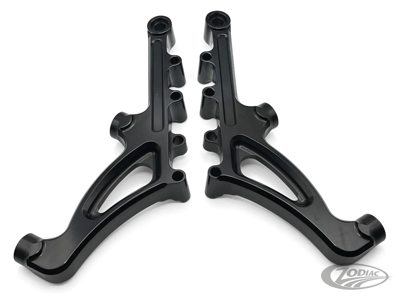 Method Gabeltauchrohre verfügen über ein Performance Design mit integrierten Funktionen die beitragen, den Style und das Handling von Touring zu verbessern. Sie verfügen über eine integrierte "No Flex" Gabelstrebe, die sich in die Linien der Tauchrohre einfügt und für Steifigkeit und Stabilität der Gabel für verbessertes Handling sorgt. Diese Tauchrohre eignen sich für die originalen Performance Feder- & Dämpfer Setups aus dem Zubehör. Werden mit Billet 12 Punkt Achsmuttern, Gabeldichtungen und Staubdichtungs abdeckungen geliefert. Die Bremssattelhalterungen sind für Bremsscheiben der Werksgröße von 11,8" ausgelegt und nehmen bis zu 14" große Bremsscheiben auf. Entwickelt für 18" bis 19" Vorderräder. 21" Vorderräder erfordern spezielle Kotflügel- und Gabelstreben Distanzstücke.