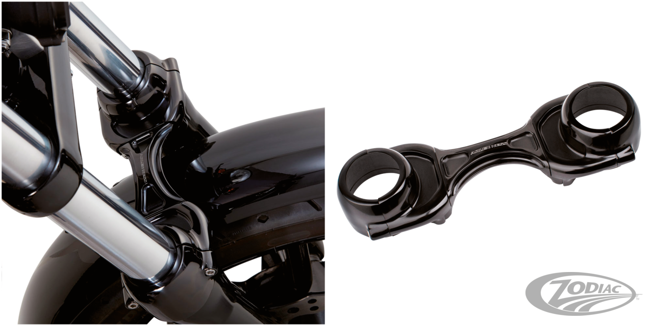 Für 39mm Gabeln der FXR und Sportster Modelle von 2000-2017 mit 19" Vorderrad, ausser XL883N Iron, XL1200N Nightster, XL1200NS Iron & XR1200, Method Gabelstabi, schwarz-eloxiert