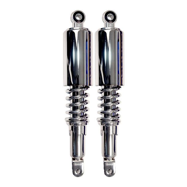 Emgo, OEM style shock absorbers for Honda. With shroudChrome with upper shroud. OEM style reproduction rear shock absorber for stock style replacement. Replaces 52400-390-681XW; 52400-292-670XW and 52400-323-010XW.