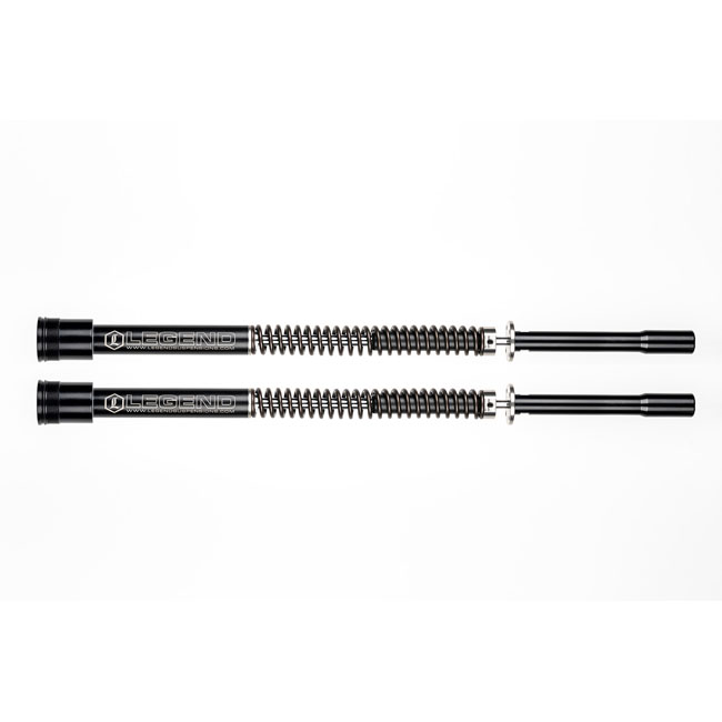 Designed with a performance spring rate to eliminate front-end dive during aggressive braking and maneuvering. Ride quality is smooth and controlled. Improves stability; cornering; and traction. Firm feel for high-speed sweeping turns. Eliminates bottoming out on large bumps or potholes. Reduces dragging floorboards and pegs Increased pre-load range allows the tuning for various riding styles and weights. With machined 303 Stainless threaded pre-load adjuster. Set includes two mono-tube; dual-chambered damper cartridges; and two rebound springs. Designed for optimum performance with Legend rear suspensions. Forh use with stock diameter front wheels. Easy installation. Note: Incorporates static sag to shorten overall fork tube length by approximately 1/2"; resulting in weight transferred to the front wheel for improved handling. Note: Does not fit FLSB/FXDRS/FXFB/FXLRS models with inverted forks.