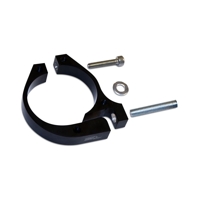 CNC machined billet aluminum. Black anodized with Free Spirits logo. This are fork tube clamps for installing all turn signals; that are 8mm threaded; directly onto the fork tubes. Clever; hardly visible; 2-piece construction for quick and easy installation without having to disassemble triple tree or fork tubes during installation. Note: Turn signals not included.